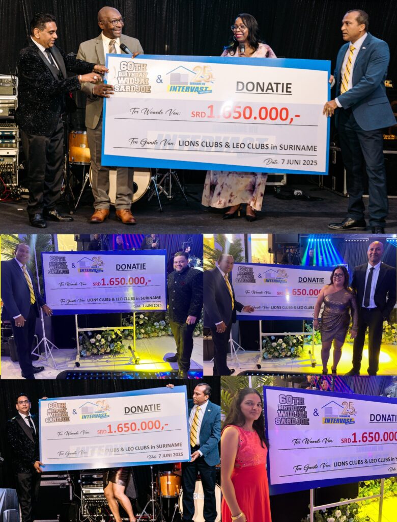 Dhr ๐ช๐ถ๐ฑ๐ท๐ฎ๐ถ ๐ฆ๐ฎ๐ฟ๐ฑ๐ท๐ผ๐ฒ viert d.d. 08 Juni 2025 zijn 60ste levensjaar en levenswerk โ๐๐ป๐๐ฒ๐ฟ๐๐ฎ๐๐ ๐ฆ๐๐ฟ๐ถ๐ป๐ฎ๐บ๐ฒ ๐ก๐ฉโ haar 25ste Jubileum. Om deze heugelijke gebeurtenissen niet ongemerkt voorbij te laten gaan en de samenleving mee te laten profiteren van deze feest vreugde wordt er een financiรซle donatie van ๐ฆ๐ฅ๐ ๐ญ.๐ฒ๐ฑ๐ฌ.๐ฌ๐ฌ๐ฌ,- (รฉรฉnmiljoen zeshonderd en vijftigduizend Surinaamse Dollars) gedaan. Met deze financiรซle donatie willen wij ondersteuning bieden aan al het goede en waardevolle werk van onze Lions – en Leo Clubs en al haar actoren, zodat zij al het goede werk kunnen behouden en continueren.